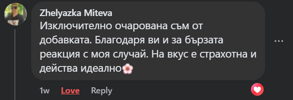 Искаме всеки да може да опита добавката спокойно и да види ефекта в рамките на първите 21 дни, както и пълния резултат от един цикъл. Ако все още не е доволен, възстановяваме сумата без проблем.